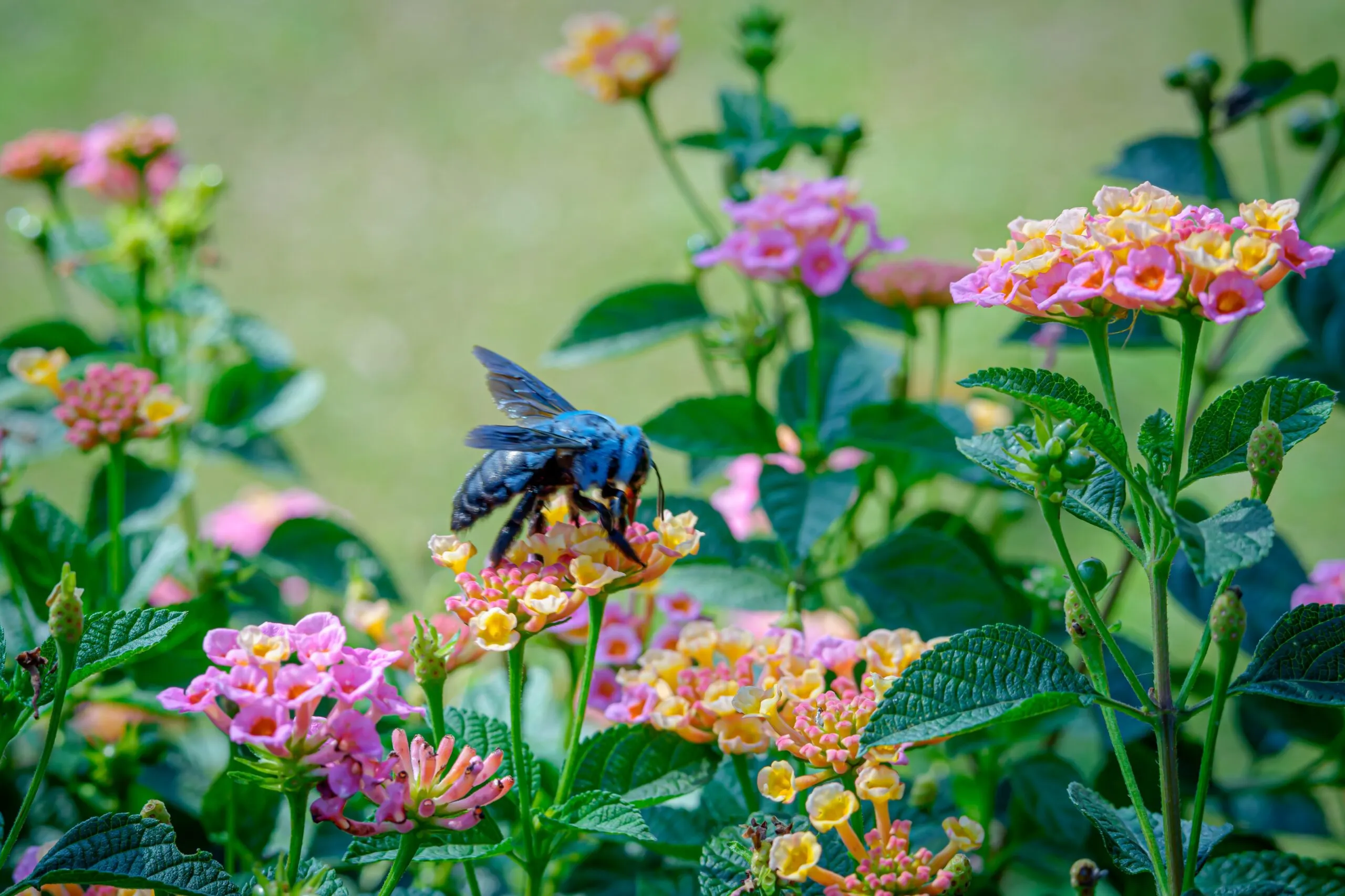 Of all carpenter bees, the blue carpenter bee might be the most visually striking. Females display a dazzling blue sheen, while male bees are greenish or brown. Like other carpenter bees, they nest in wood, often preferring to reuse pre-existing holes over drilling new ones.