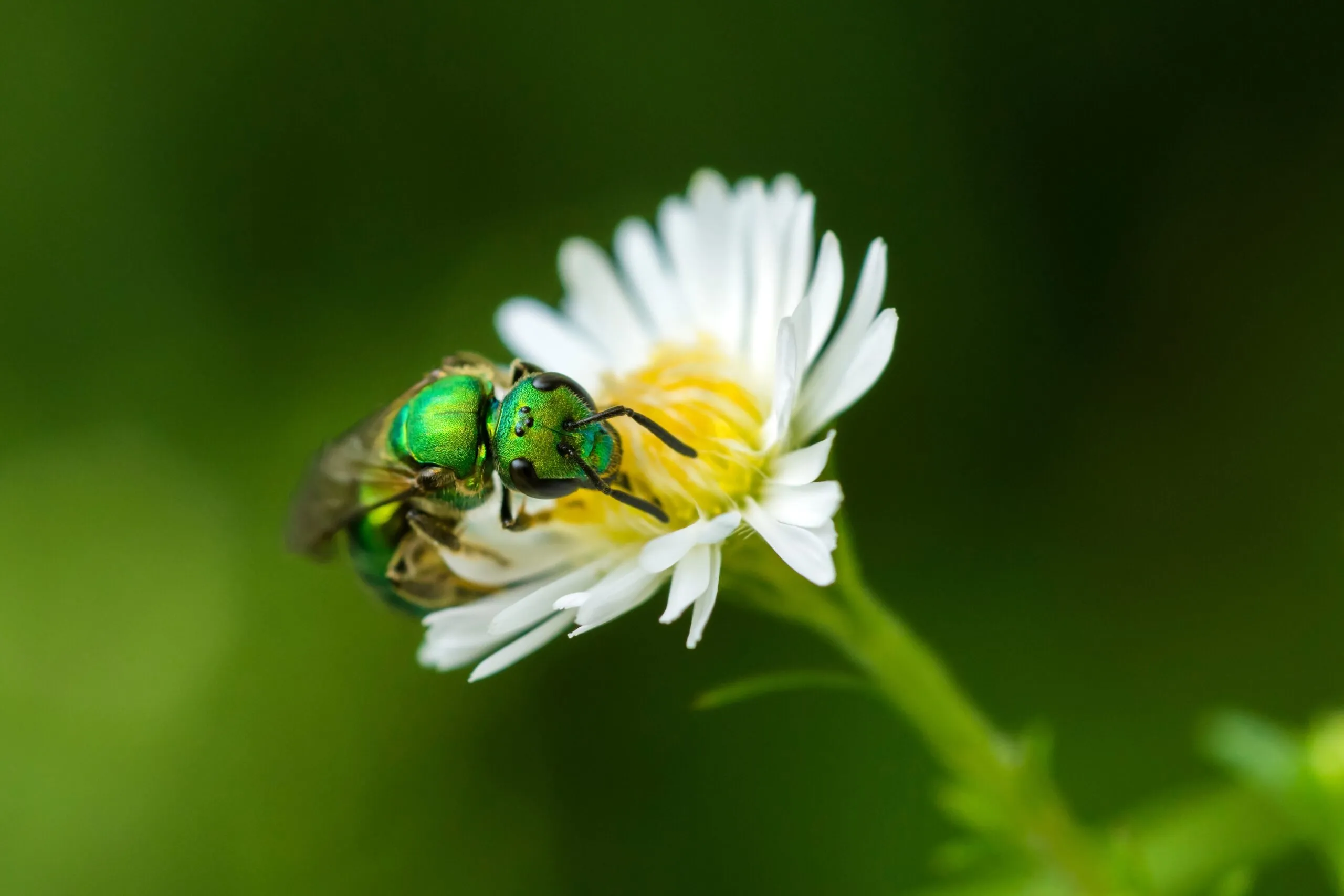 Native to Eastern Canada and the United States, the pure green sweat bee is one of the most eye-catching sweat bees out there. Named for their attraction to human perspiration, these solitary bees are fiercely territorial.
