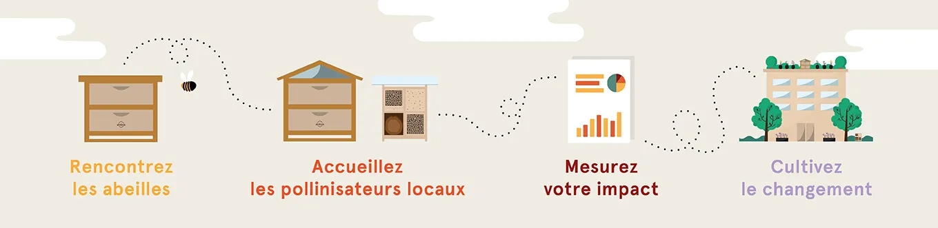 Que votre organisation soit au tout début de sa démarche durable ou que vous cherchiez à en faire davantage pour l’environnement, nos expériences nous permettront d’évoluer avec vous, en phase avec vos besoins et vos objectifs, tout en soutenant l'avenir de l'apiculture urbaine et d'autres initiatives écologiques.