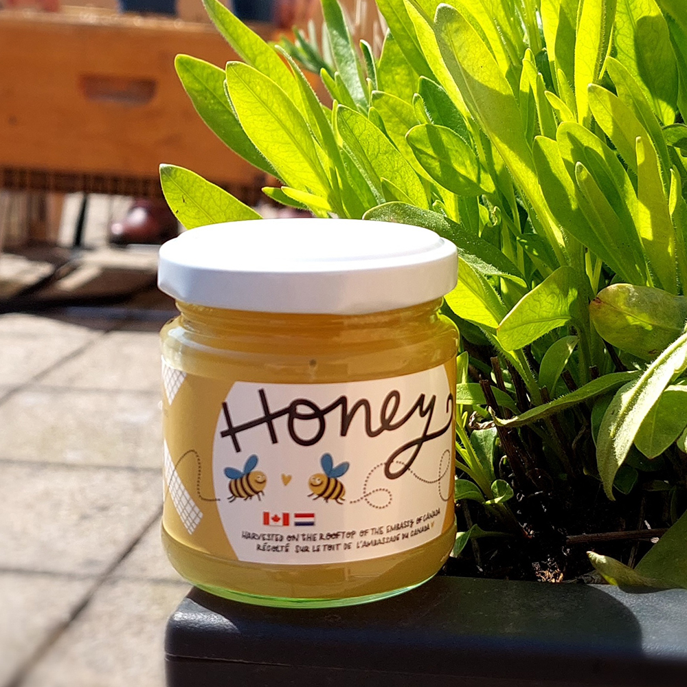 L'ambassade du Canada aux Pays-Bas a remporté le prix pour la conception de l'étiquette du pot de miel.