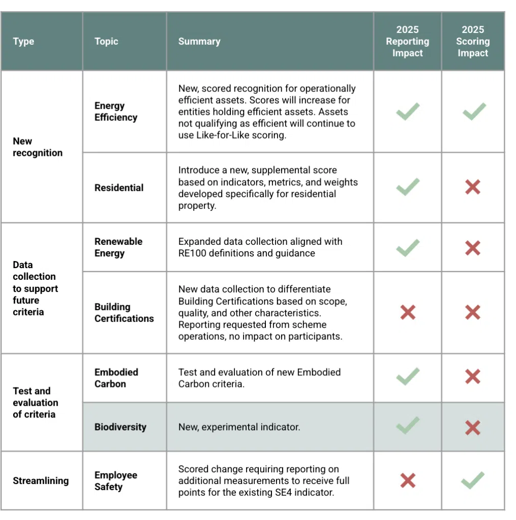En 2025, des changements importants ont été apportés à l'évaluation des biens immobiliers du GRESB.