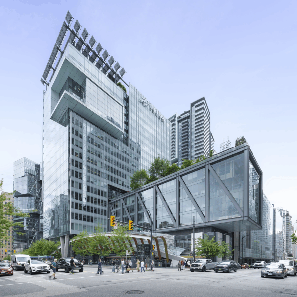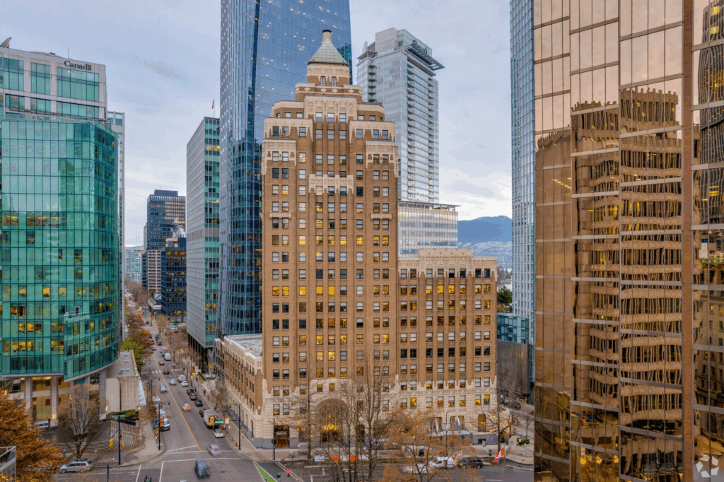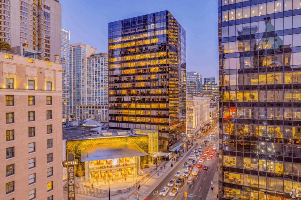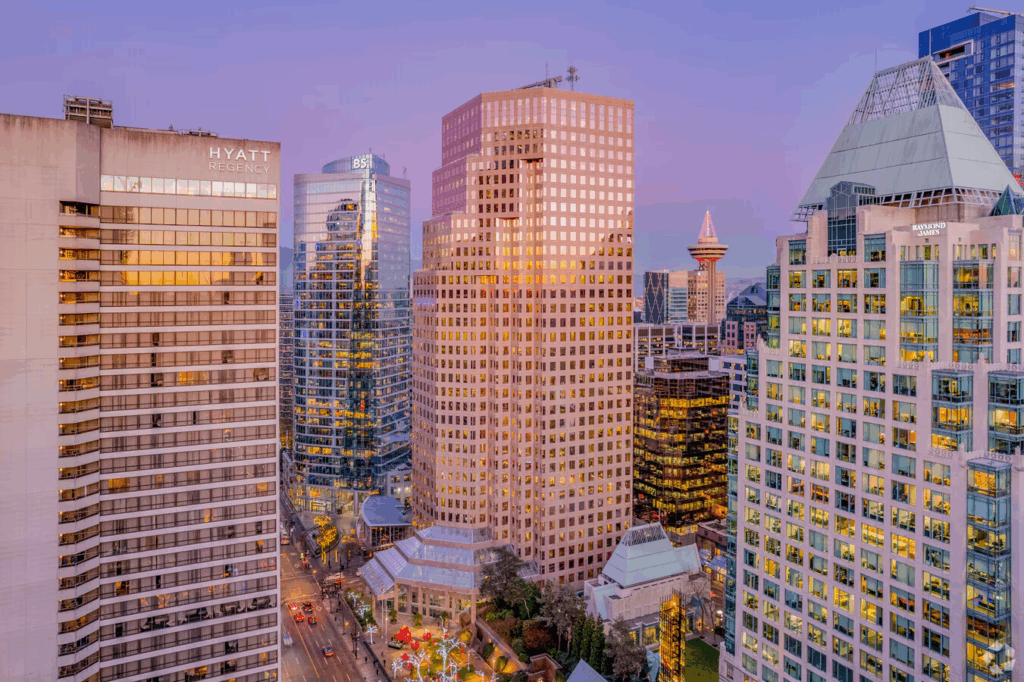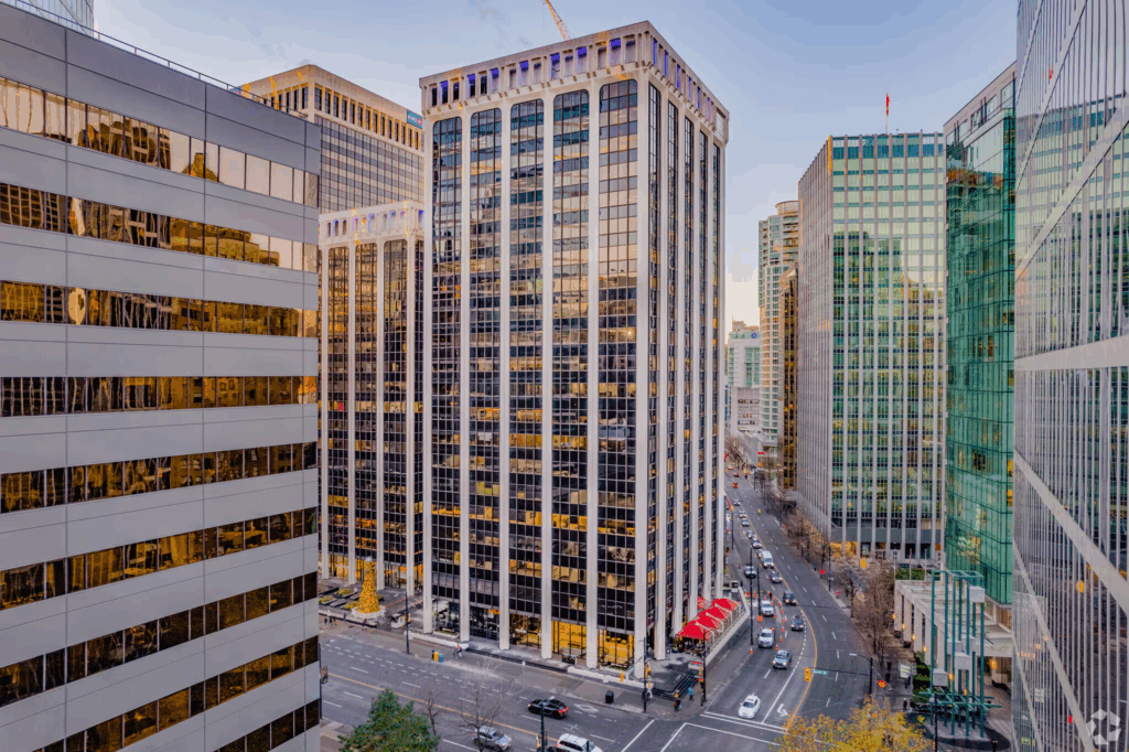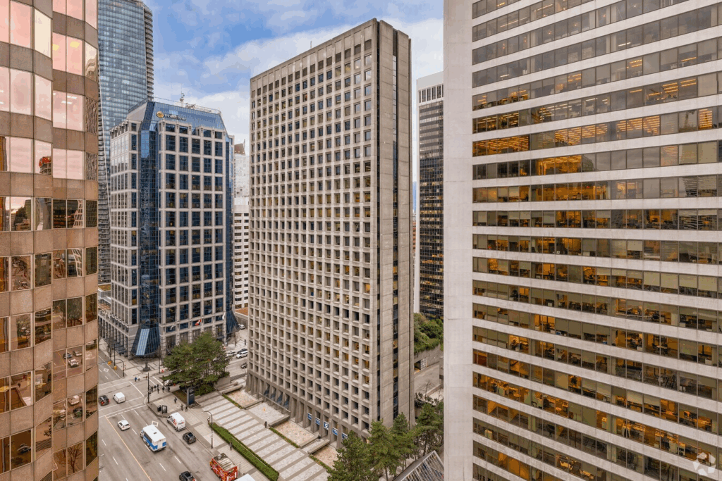 Located at the intersection of Burrard and Georgia, this tower, formerly Royal Centre, is as central as it gets. Positioned directly above Burrard Station and connected to Vancouver’s underground network, it offers seamless access no matter the weather. With an in-building Starbucks, direct access to the Hyatt, and a roster of top-tier tenants, it’s a textbook example of reliable Class A office space in the city.