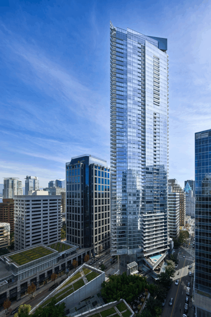 As Vancouver’s tallest tower, this landmark rises above luxury car dealerships, five-star dining, and a renowned local spa. A blend of hotel and private residences, it draws an international clientele as well as locals seeking a premium lifestyle. Located on Georgia Street, it offers access to the Seawall and some of the city’s top business and dining destinations, including power lunches at Hawksworth.
